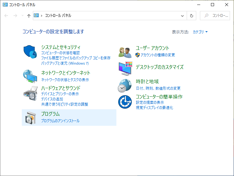 「プログラムと機能」「Windows の機能の有効化または無効化」