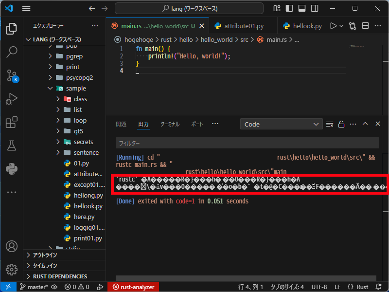 「Visual Studio Code」で、「rust」のコードを実行してみようとしたら・・・。