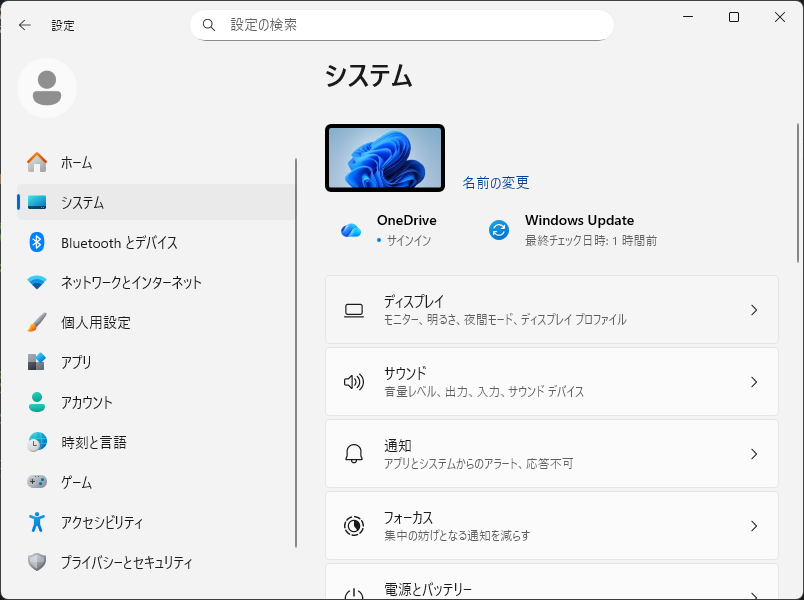 Win+I で設定画面を開いて。