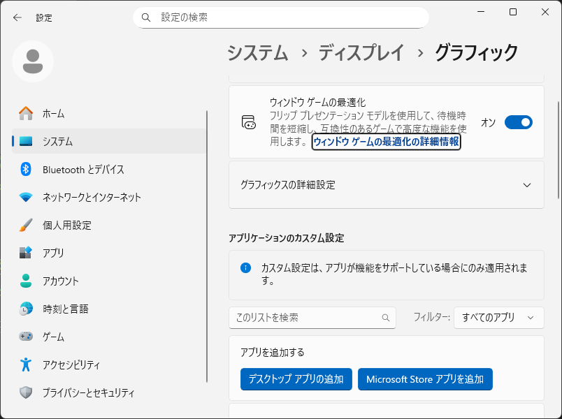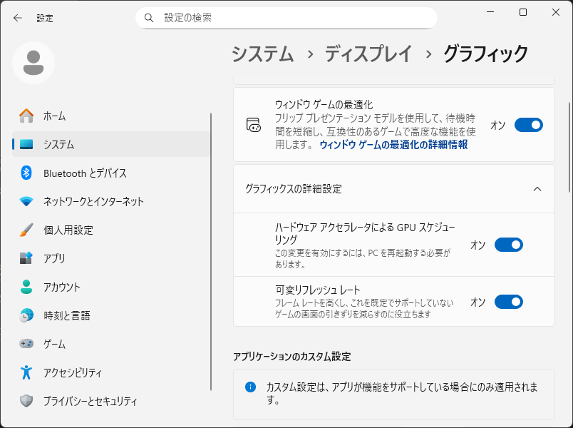 「グラフィックスの詳細設定」を展開して。