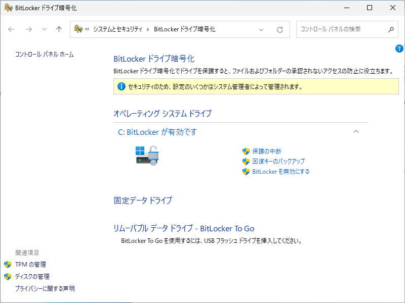 「FMV Q&A - [Windows 11] BitLocker ドライブ暗号化を有効 / 無効にする方法を教えてください」