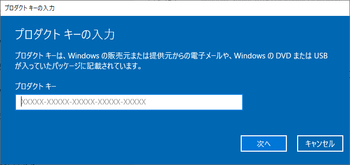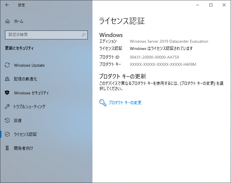 DISM /online /Set-Edition:ServerDatacenter /ProductKey:[正式なプロダクトキー] /AcceptEula
