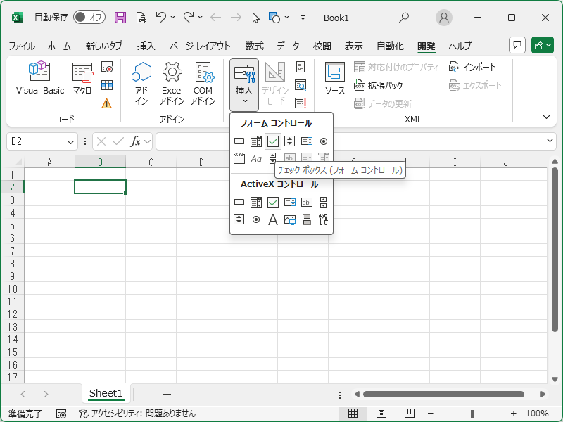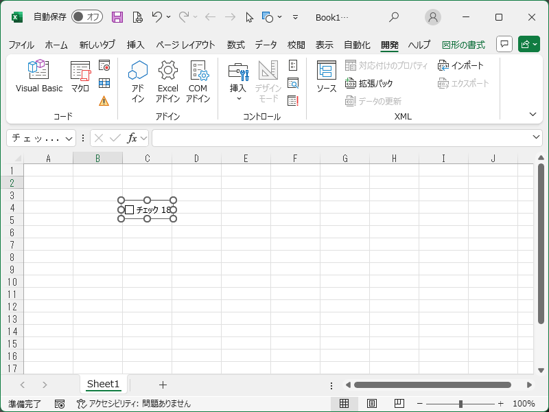いれたいところをクリックすれば、チェックボックスを置くことができます。