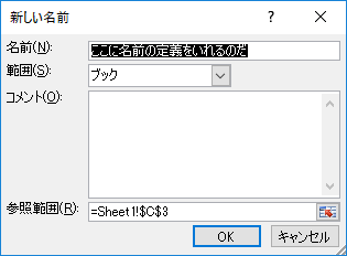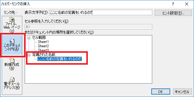 「このドキュメント内」→「名前の定義」から定義した名前を選択して「OK」