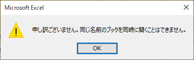別フォルダにある、同一ファイル名の「Excel」ファイルを開こうとすると・・・。