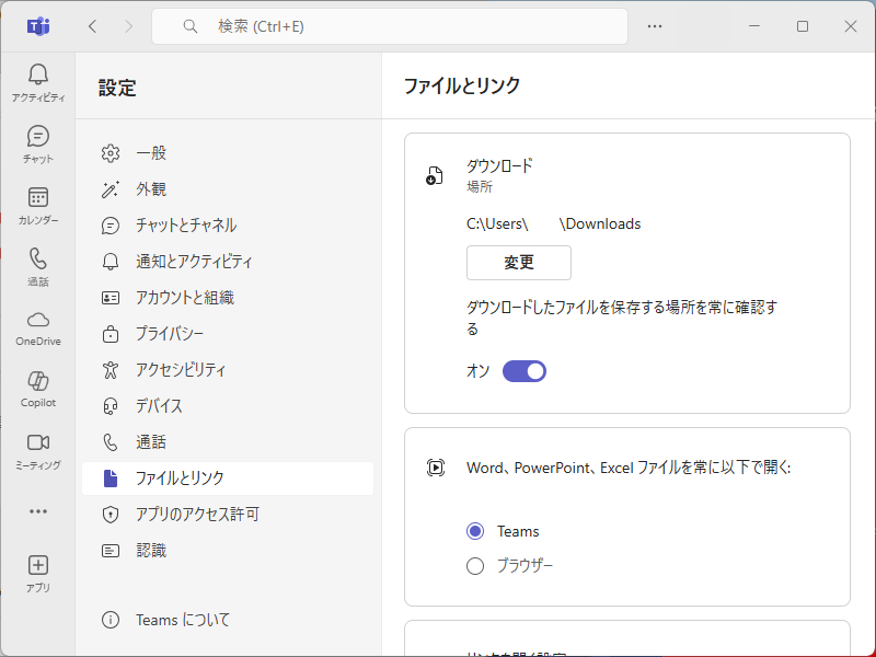 「ダウンロード」の「ダウンロードしたファイルを保存する場所を常に確認する」へチェックをいれます。