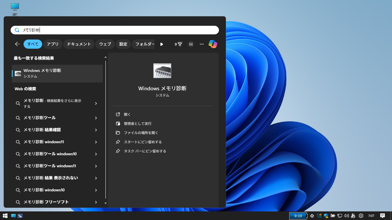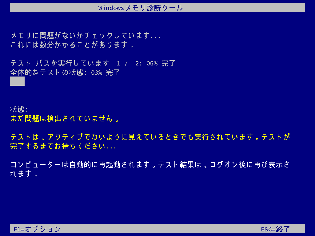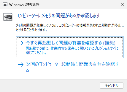 再起動後、「タスクバーの右下に『メモリの診断結果』のメッセージが表示」されるらしいのですが。