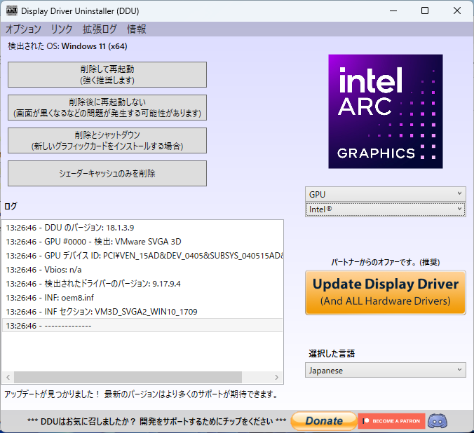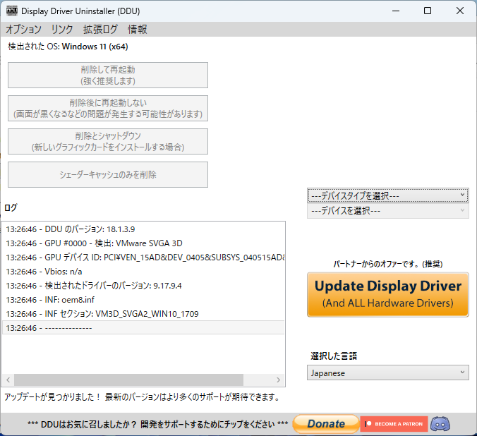 まず、あらかじめ、「Display Driver Uninstaller」というプログラムを取得しておきます。