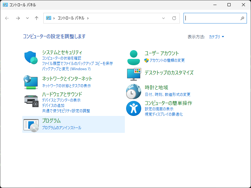 Win+R で、「ファイル名を指定して実行」を開いて、control でコントロールパネルを開きます。