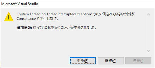 今んとこ「System.Threading.ThreadInterruptedException」を発生する方法しか、例示できませんが、他の方法がわかれば、加筆します。