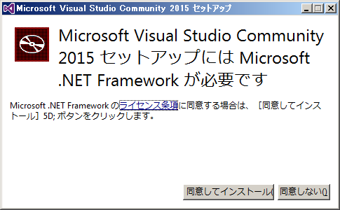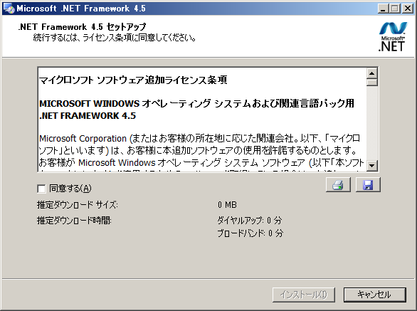 うーむ先に「.Net Framework」をインストールしなければならないらしい。じゃあ「同意してインストール」を表示するなよ。