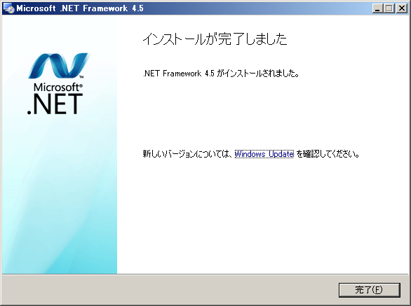 「.Net Framework」のバージョンもわかりませんが、新しい方がいいかと以前にダウンロードした「.NET Framework4.5 スタンドアロンインストーラ&言語パック」があったのでそいつをインストールしてみます。