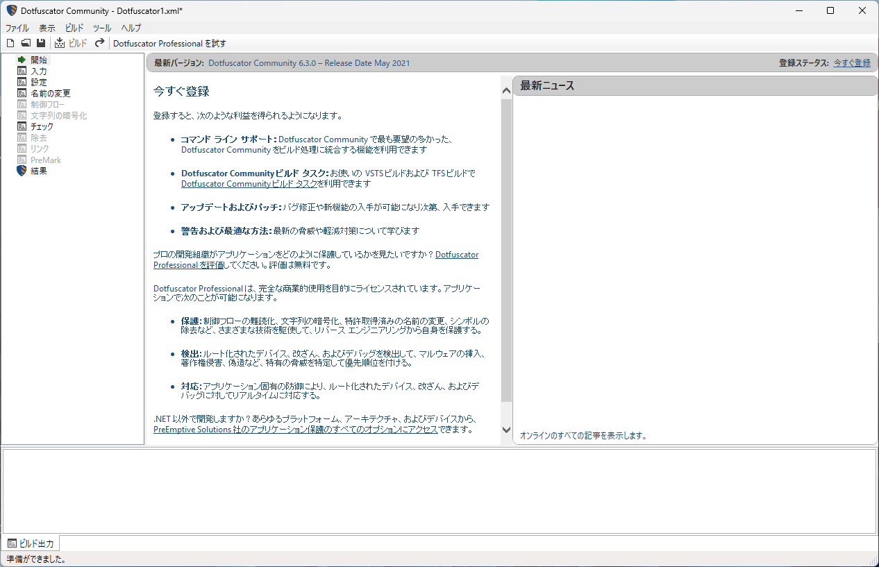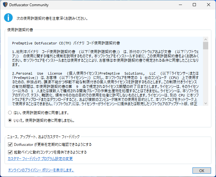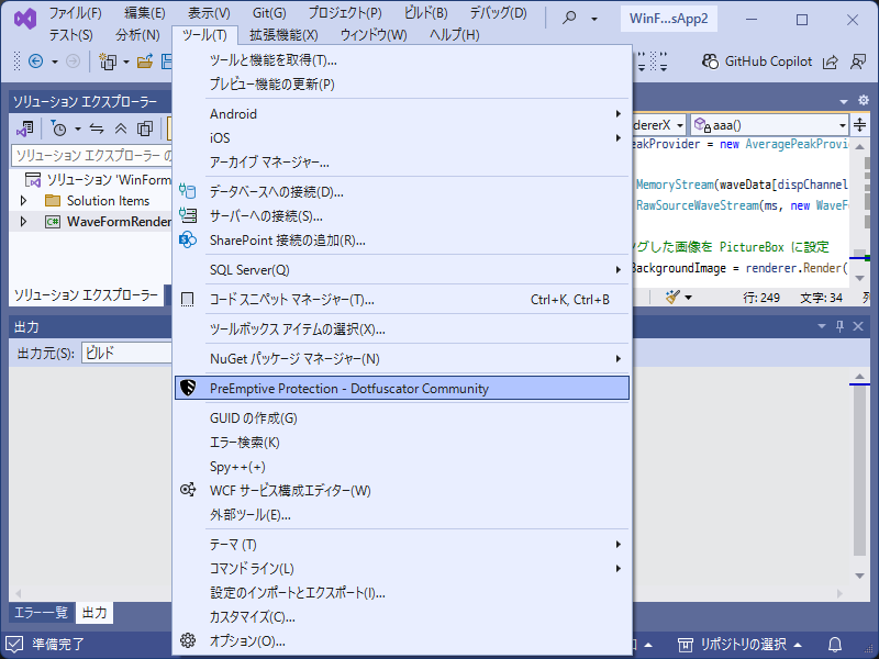 「ツール」→「Preemptive Protection - Dotfuscator Community」
