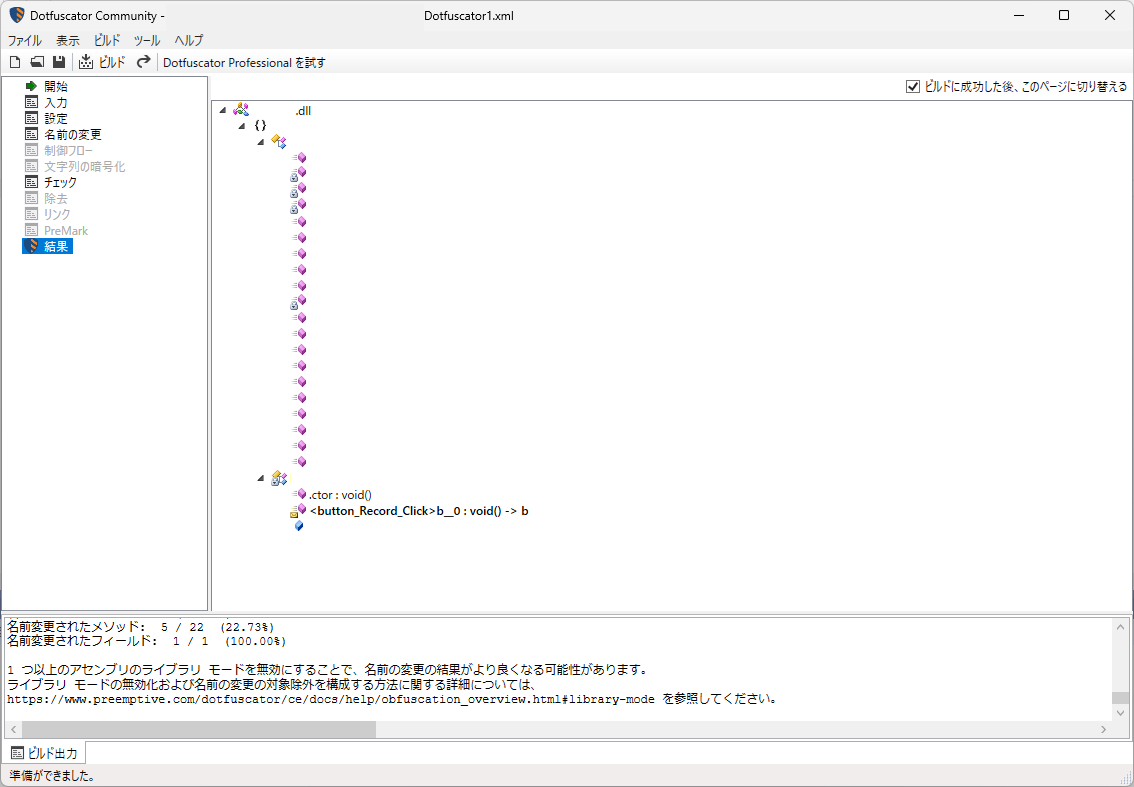 これで、出力ディレクトリに、難読化された、「.dll」が作成されます。