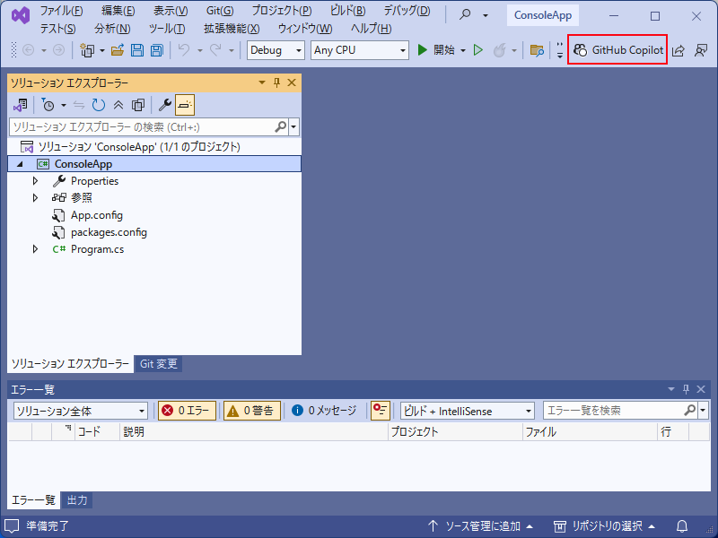右上に「GitHub Copilot」ちゅうのが、おりまして。